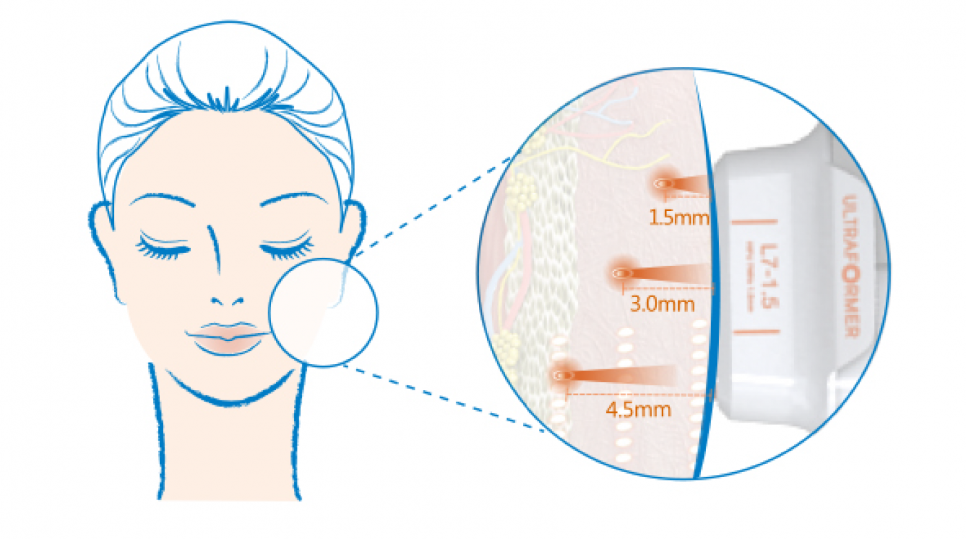高能聚焦超音波(HIFU)透過聚焦式超音波能量,將熱能傳送至特定皮膚深度,