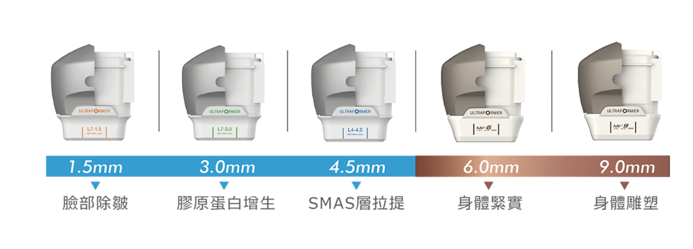 作用於皮膚不同層次,從 真皮層、SMAS 筋膜層至脂肪層,達到拉提緊實、輪廓雕塑與改善鬆弛脂肪的效果。