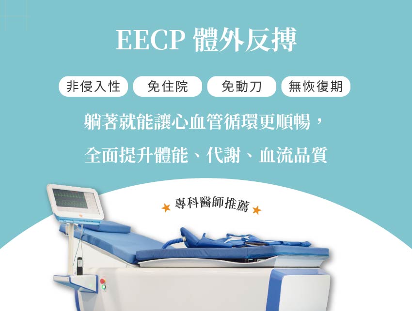 EECP(Enhanced External Counter Pulsation)是一種非侵入性、無需手術、不需住院的心血管治療與保健方式。