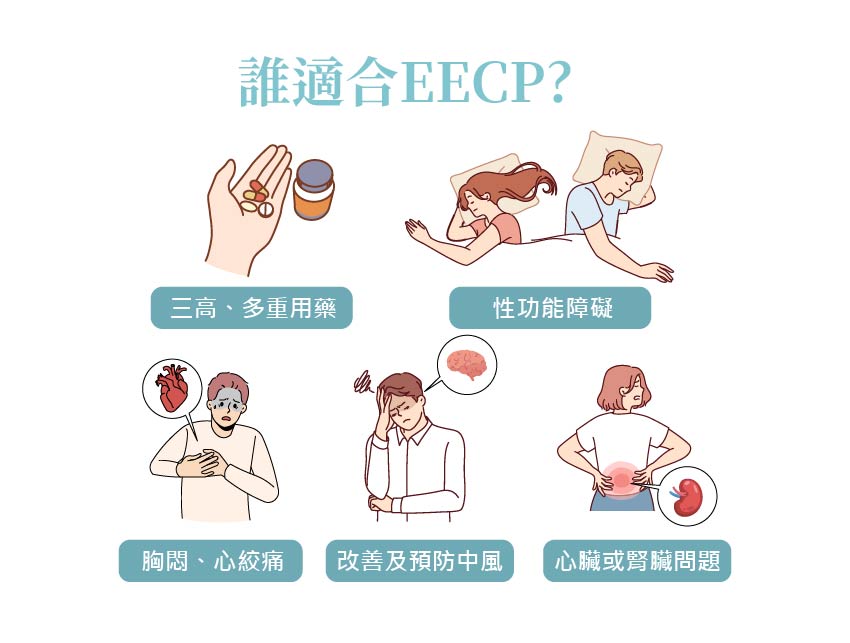 適合無法接受侵入性手術者: 對於不適合支架植入、繞道手術、或對手術風險敏感者,EECP 是一種較安全、低風險的替代或輔助選項。