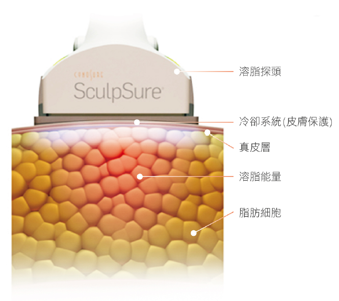 | 雷射能量精準破壞皮下脂肪細胞,不傷害表皮。 | 脂肪細胞加熱至 42–47°C,同步冷卻保護皮膚。 |
