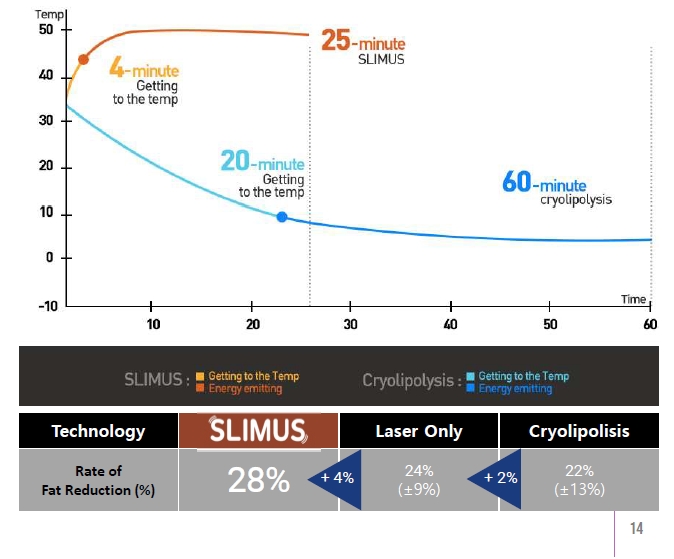 4 分鐘內升溫至 42~47°C 加熱脂肪細胞