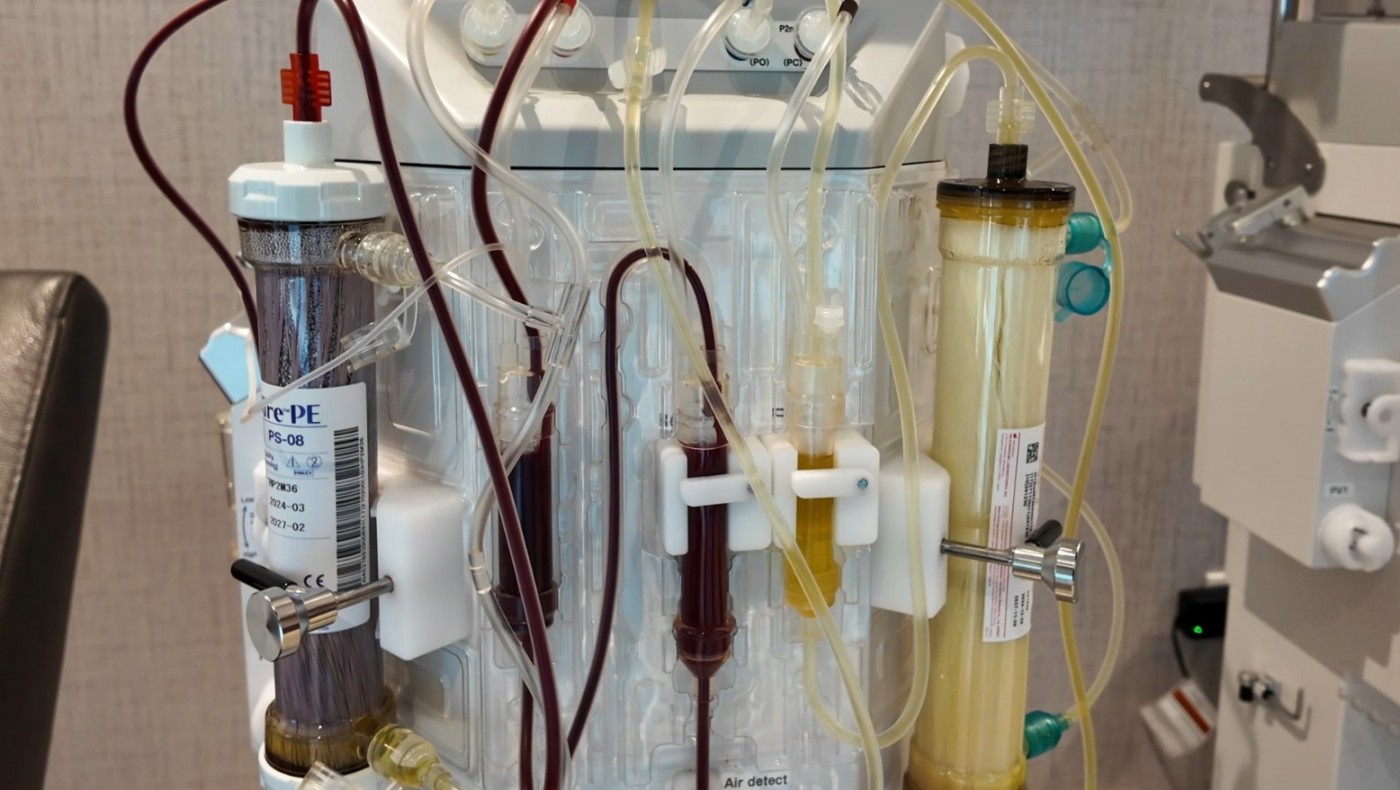 血液淨化透過體外循環與雙層濾心過濾血漿中的特定中大分子物質後,再將處理過的血液回輸體內。