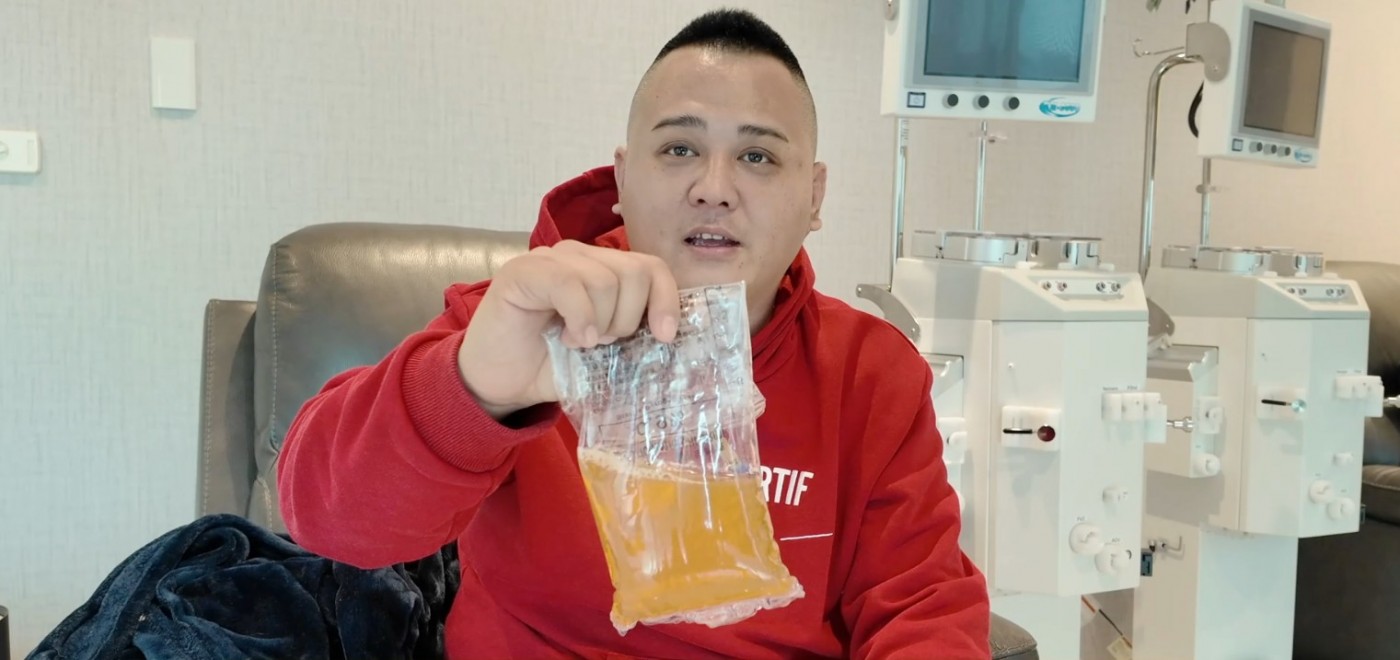 這是血液淨化過程中分離出的血漿廢液,呈現偏黃顏色,主要為經雙重過濾後篩除。